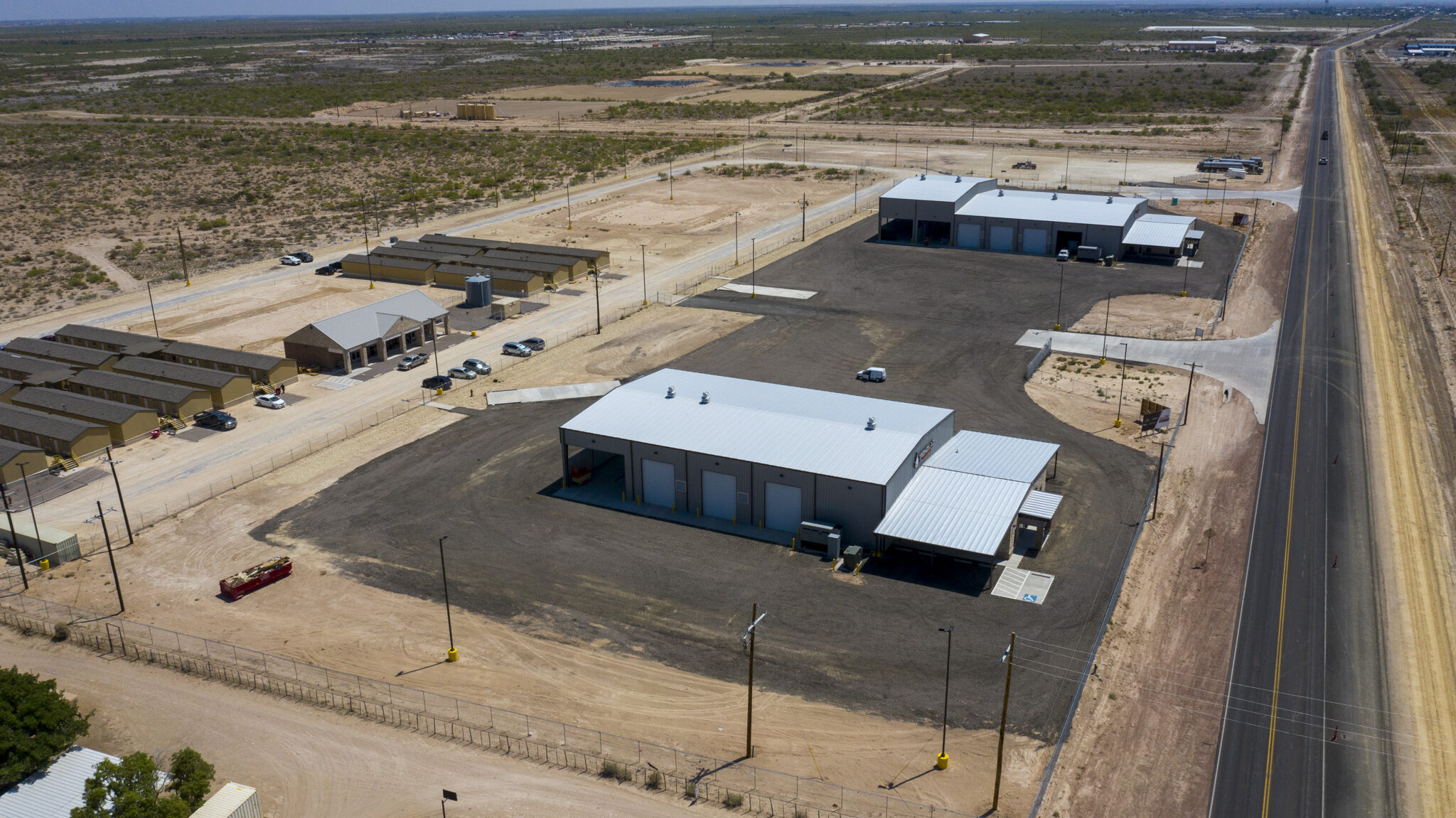 11700 Tower Project is a new 16,425 square foot design build structure for a tenant lease. 4.7 acres were developed with public water, natural gas, septic system and fenced to place this PEMB facility which consists of 3925 square foot of finished/flex office space, the shop is 5 ton crane ready and has a built in slab sump with connected sand separators, submersible pumps and a 210bbls ground level water storage tank with concrete retention walls, for gray water. The facility has fire suppression throughout, radiant heat in the shop, a cold-formed steel parapet wall with custom steel awnings.